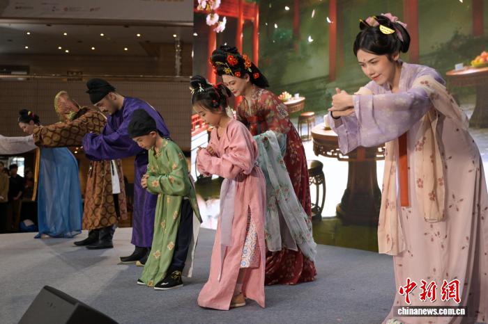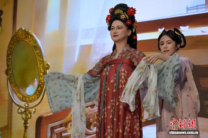 图为《少安秋宴》唐朝打扮树模上演。记者 旧永诺 摄